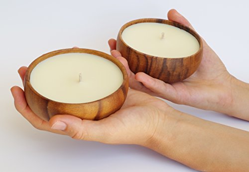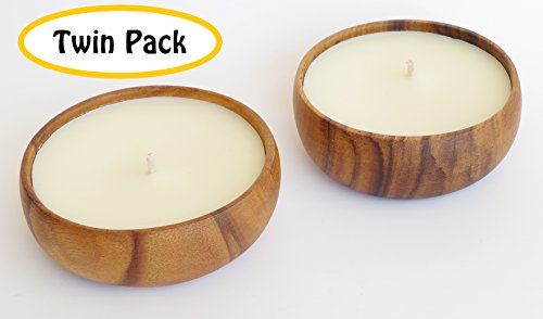 Tea Rose Soy Candle (TWIN PACK) in Handmade Acacia Wood Bowl - Made with 100% NATURAL SOY WAX, 100% Satisfaction Guaranteed!