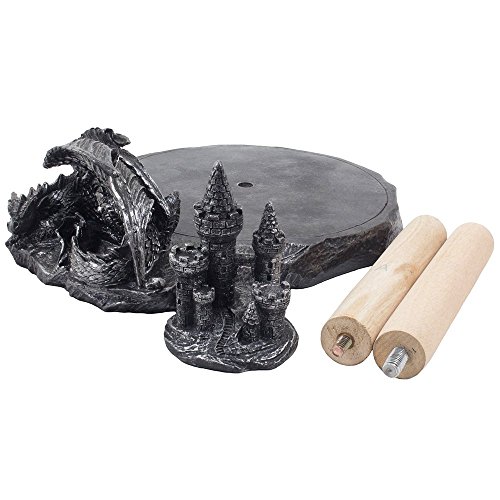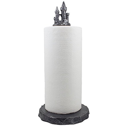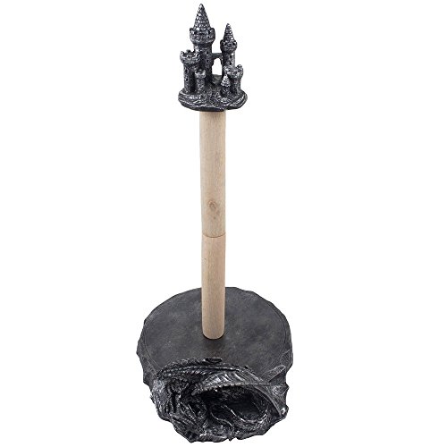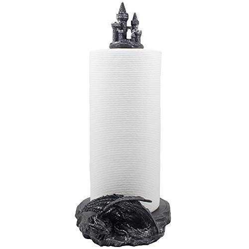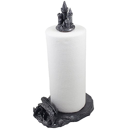 Mythical Guardian Dragon Paper Towel Holder with Castle Figurine in Metallic Look for Medieval Kitchen Decor As Decorative Fantasy Housewarming Gifts