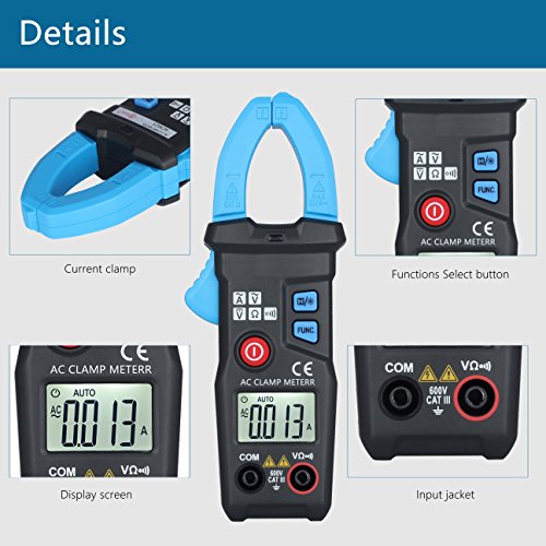 Multi-function Design: Measurement of AC Current, AC Voltage, DC Voltage, Resistence with high precision. Short press of “H” button will hold the data; Long press of it offer you LED backlight display for the data when in a dark environment. Max Current range is 200A, Max Voltage is 600V, and Max Resistence is 6kΩ. “On/Off indication” would tell you whether electricity is connected.