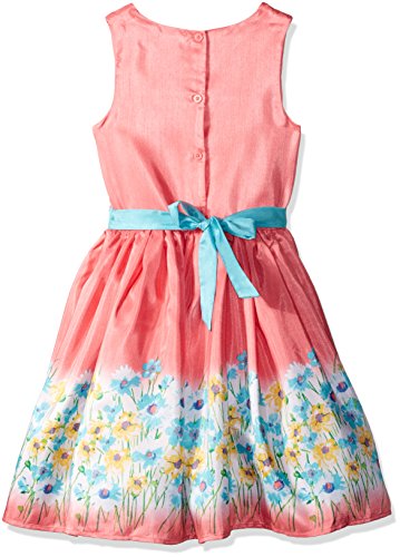 Zunie Big Girls' Shantung Floral Border Dress with 3d Butterflies, Bright Coral, 8