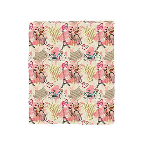 (VROSELV)/Bedding Bath/Bedding/DIRECT FROM USA/VROSELV Custom Blanket Paris Landmark of France with Abstract Letterings Bike Hearts Art Print ...