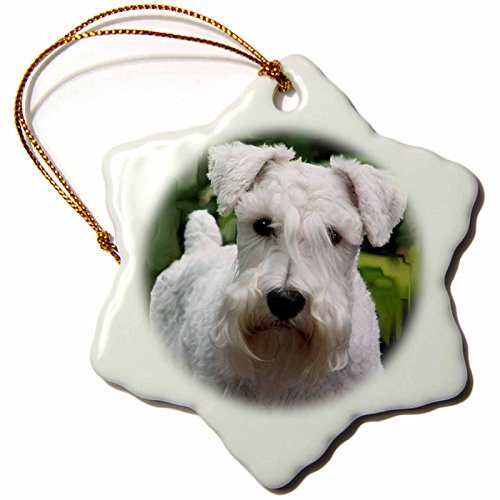 3drose orn_4275_1 White Schnauzer Snowflake Porcelain Ornament, 3-Inch