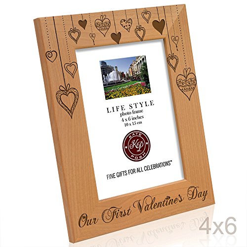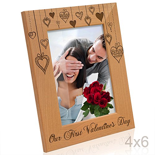 Kate Posh - Our First Valentine's Day Engraved Natural Wood Picture Frame, First Valentine's Together, Valentine's Day Gift for Couple, for Her, for Him, Valentine's Day Wedding Gifts (4x6-Vertical)