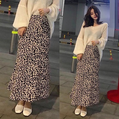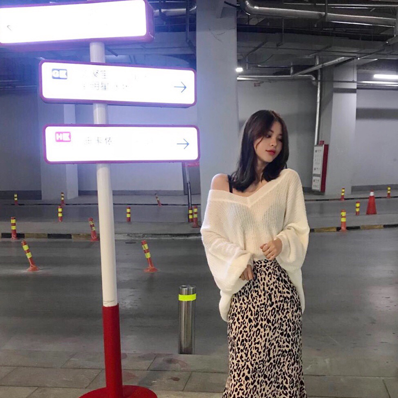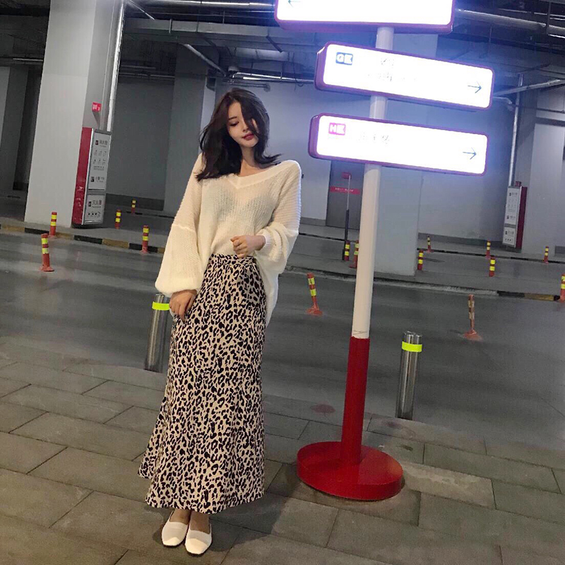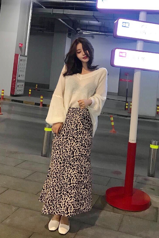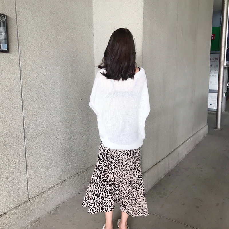 豹柄、ひょう柄、ヒョウ柄、レオパード、トレンド、アニマル、動物柄、2019、秋、冬、フレアスカート、アニマル、大人かわいい 、ママコーデ、フレア、ロング、Vネック、メッシュ、セーター、白トップス、コーデセット、セットアップ、ツーピース、カジュアル、ママコーデ、