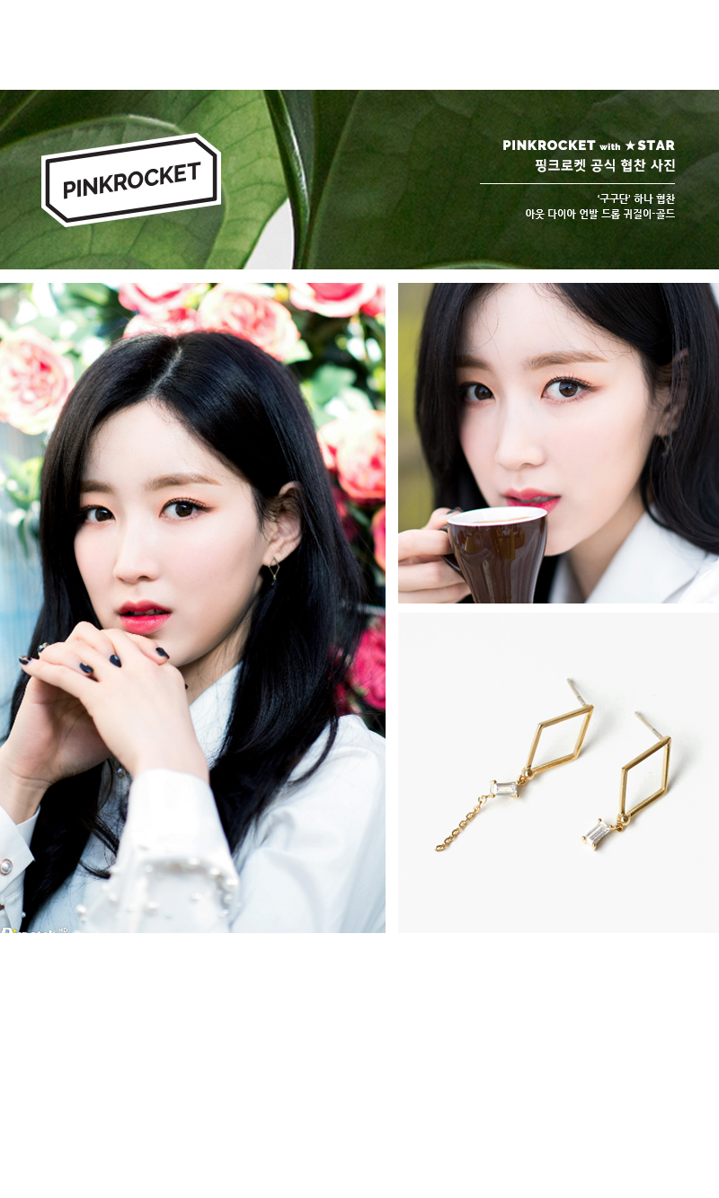 아웃 다이아 언발 드롭 귀걸이 (골드),