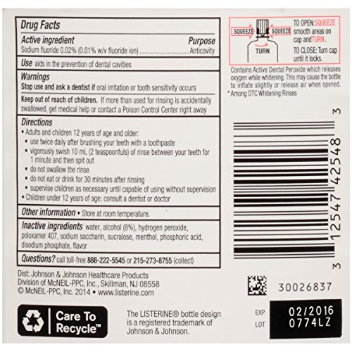 -. Feature : 16 fluid ounce bottle / Now with Fluoride / Removes Tough Surface Stains / Starts to Work on Contact / Kills Bad Breath Germs and Strengthens Teeth