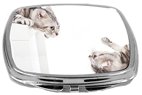 Rikki Knight Two Grey Kittens Playing on White Background Design Compact Mirror, 17 Ounce