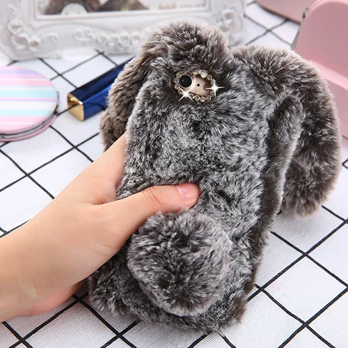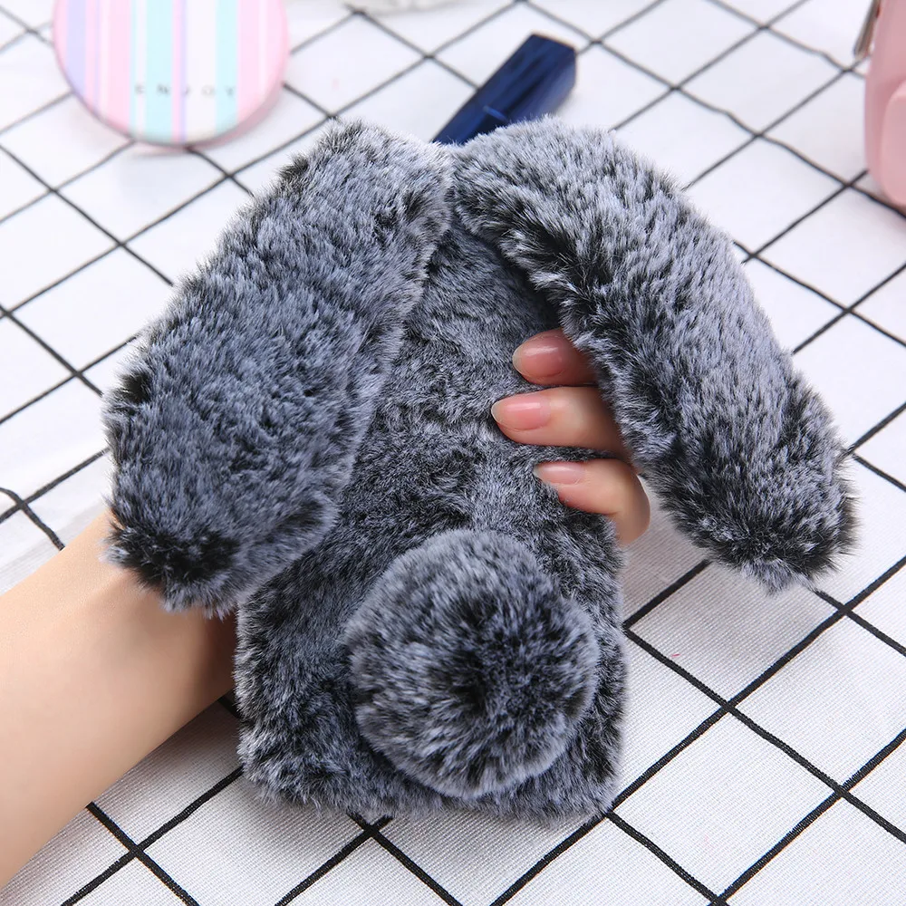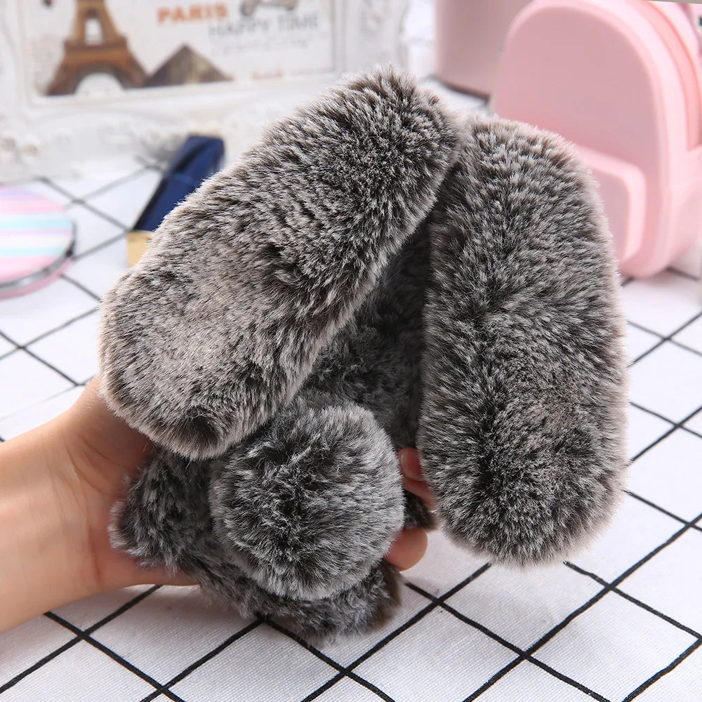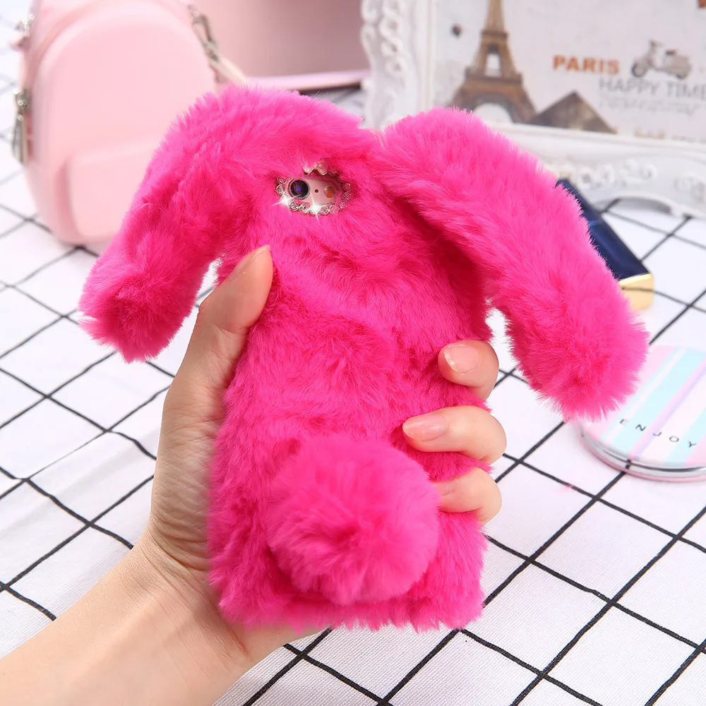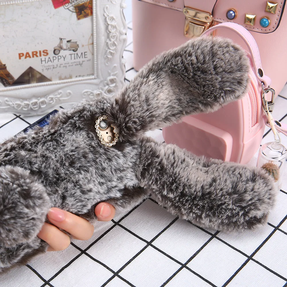 Function 2:3D Lovely Cartoon Warm Plush Fluffy pet rabbit Long ears Phone Case