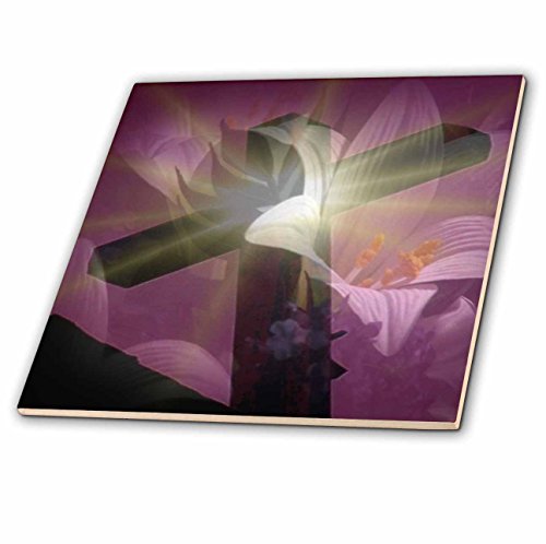 3dRose ct_42952_5 Christian Cross and Lily-Glass Tile, 4-Inch
