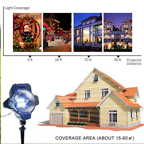 - LARGER PROJECT AREA -- Compared with old version snow light, this rotating snow falling light projects larger coverage area , Projects images 700 square feet at a 50ft distance. You are able to decorate the whole house with only one light, saving more space and money.