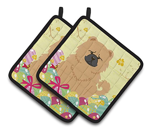 Caroline's Treasures Easter Eggs Chow Cream Pair of Pot Holders, 7.5HX7.5W, Multicolor