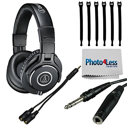 -. Title : Audio-Technica ATH-M40x Professional Monitor Headphones + Headphone Splitter + 1/4 inch TRS to 1/4 inch TRS Headphone Extension Cable + Strapeez + Photo4Less Cleaning Cloth - Top Value Headphone KIT