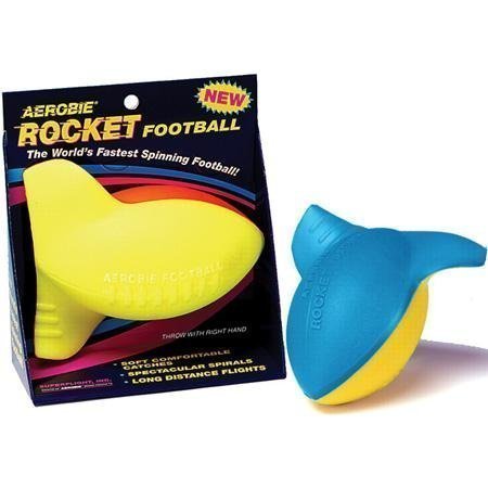 ReleaseDate : 2013-07-28 Studio : Aerobie Publisher : Aerobie Binding : Toy Product Description The Aerobie Rocket football's patented curved fins and small diameter create spectacular spirals and long distance flights. Right handed throws only. 6" long. Available in various 2-tone colors. 0