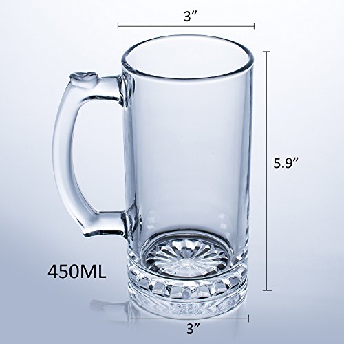 BEER MUGS STEIN WITH SIMPLE CHIC GLASS DESIGN -15.4 OZ (SET OF 4)