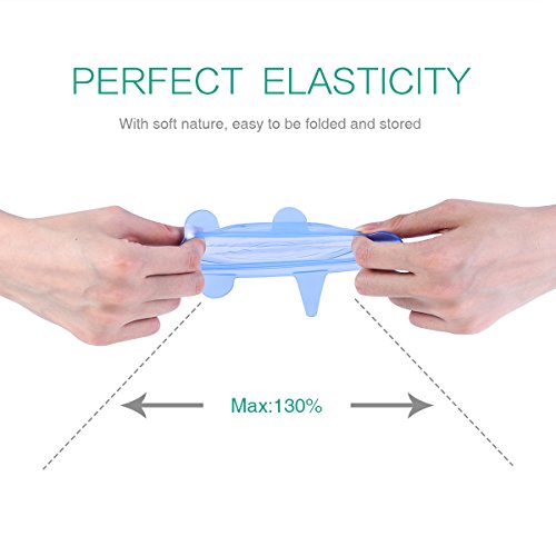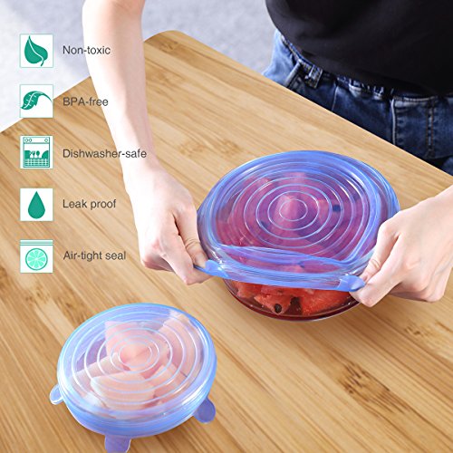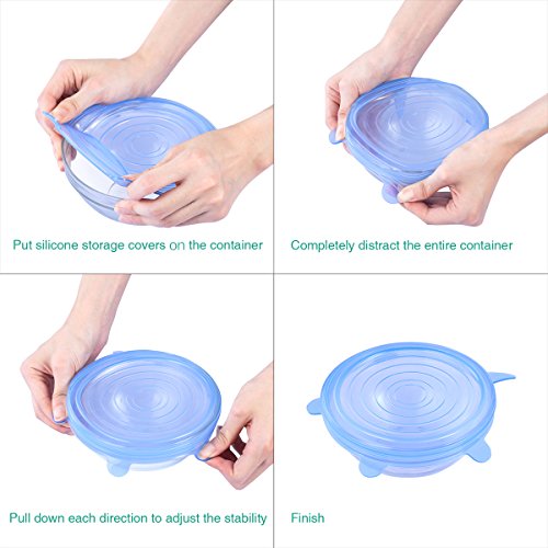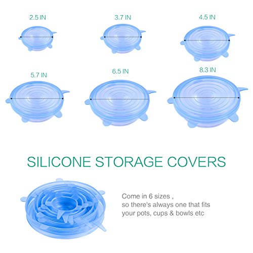 Safe Material: made by high quality FDA food grade silicone, BPA free, offer safe seal for containers to keep food fresh and guarantee the health of your family. Set of six sizes : 6.5、9.5、11.5、14.5、16.5、21cm.