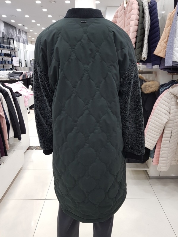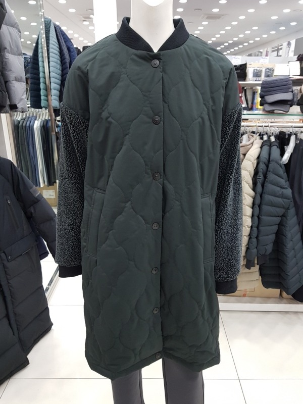 변형넥 디자인의 오버사이즈 핏 LONG PADDING JACKET. 몸판은 3OZ 패딩의 호리병 퀼팅라인을 사용. 소매에 플리스 원단을 사용하였으며 트렌드를 반영한 세련된 제품.