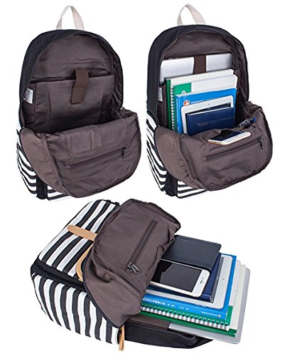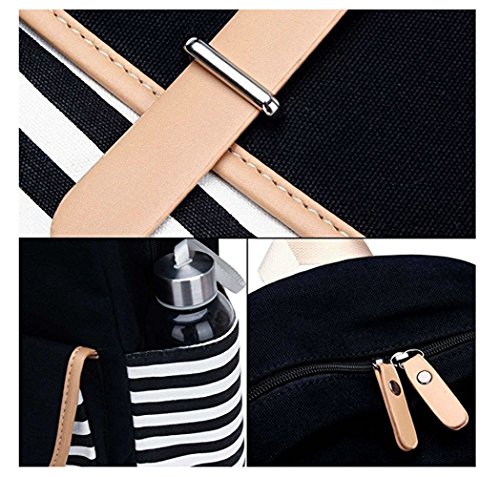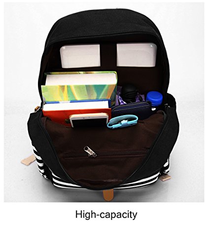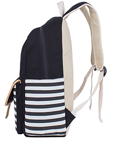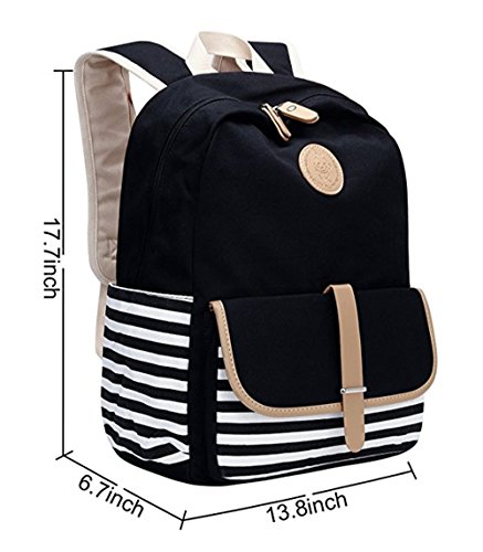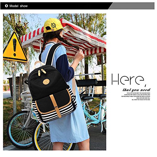 Lightweight Canvas Backpack Fashion School Bag Outdoor Travel Laptop Backpacks (AB0021-Black-2)