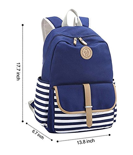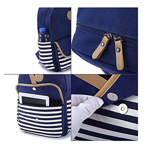Lightweight Canvas Backpack Fashion School Bag Outdoor Travel Laptop Backpacks (AB0021-Blue-2)