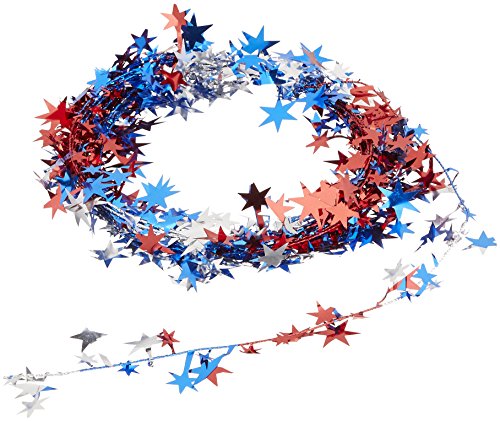Beistle 50651-RSB Gleam 'N Flex Star Garland, 25-Feet, Red/Silver/Blue