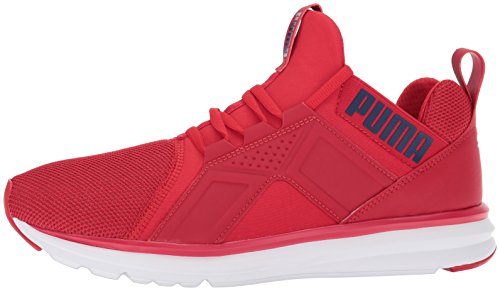 Studio : PUMA Publisher : PUMA Binding : Apparel Product Description All new enzo mesh has a unique look to capture the youthful consumer. Exaggerated collar heights and clamshell construction offer a fresh take on contemporary product. Simple breathable mesh in the toe and heel offer a clean design. The midfoot strap delivers plenty of support and locks the foot onto the platform for a fantastic fit. Softfoam sockliner and imeva midsole combine for cushioning and comfort on every run. 0