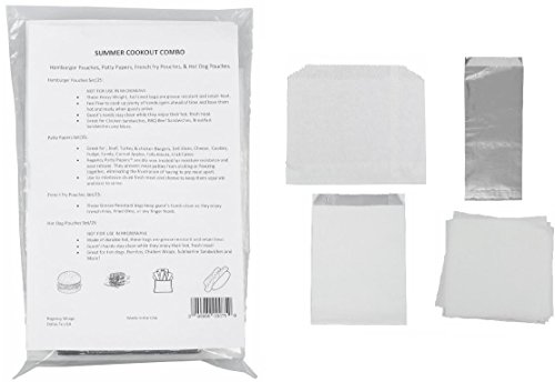 Patty Papers, Hamburger & Hot Dog Pouches, and French Fry Wrappers (25 each) - BBQ Party Supplies Package
