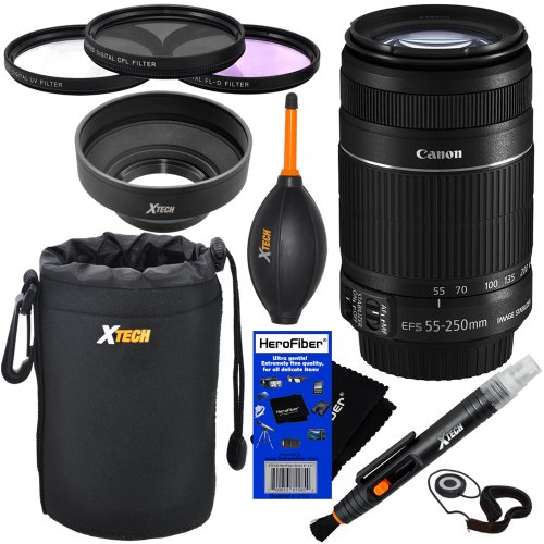 Canon EF-S 55-250mm f/4.0-5.6 IS II Telephoto Zoom Lens - International Version (No Warranty) for Canon EOS 7D, 60D, EOS Rebel SL1, T1i, T2i, T3, T3i, T4i, T5i, XS, XSi, XT, & XTi Digital SLR Cameras + 10pc Bundle Deluxe Accessory Kit