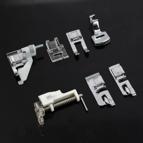 -. Feature : 1: 1. Braiding Foot; 2. Fringe Foot; 3. 5 Hole Cording Foot; 4. 7 Hole Cording Foot; 5. Edge Joining Foot; 6.1/4" Quilting Foot; 7.Straight Stitch Foot / 2: 1. Open Toe Embroidery Foot; 2. Round Bead Foot; 3. Zig Zag Foot; 4. Cording Foot; 5. 1/4" Quilting Foot; 6. Pintuck Foot 9 Grooves; 7.Overcast Foot / 3: 1. Stitch Guide Foot; 2. Pintuck Foot 5 Grooves; 3. Satin Stitch Foot; 4. Zig Zag Foot, JAGUAR; 5. Double Welting Foot; 6. Invisible Zipper Foot; 7. Roller Foot / 4:1. Blind Stitch Foot; 2. Applique Foot; 3. Open Toe Foot; 4. Darning Foot, Low Shank; 5. Gathering / Welting Foot; 6. Hemmer Foot; 7. Round Hemmer Foot / 5:1. Darnign Foot, Low Shank; 2. Adjustable Bias Binder Foot; 3. Knit Foot; 4. Zipper Foot, Low Shank