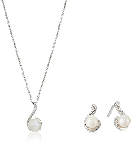 Sterling Silver Cultured Pearl with Diamond 2-Piece Box Set