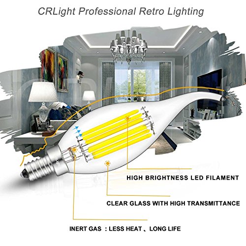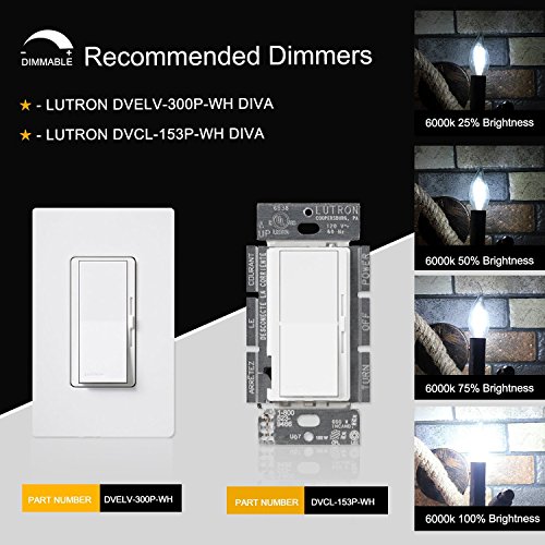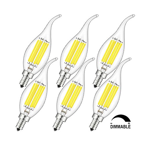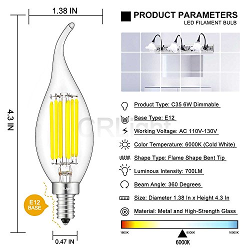 - ★ TECHNICAL FEATURES - Dimmable, LED Filament Candle, E12 Candelabra Base, AC 110V-130V, with Overload Protection,Short Circuit Protection and Over Temperature Protection, The Best Recommended Dimmer is Lutron DVCL-153P-WH Diva