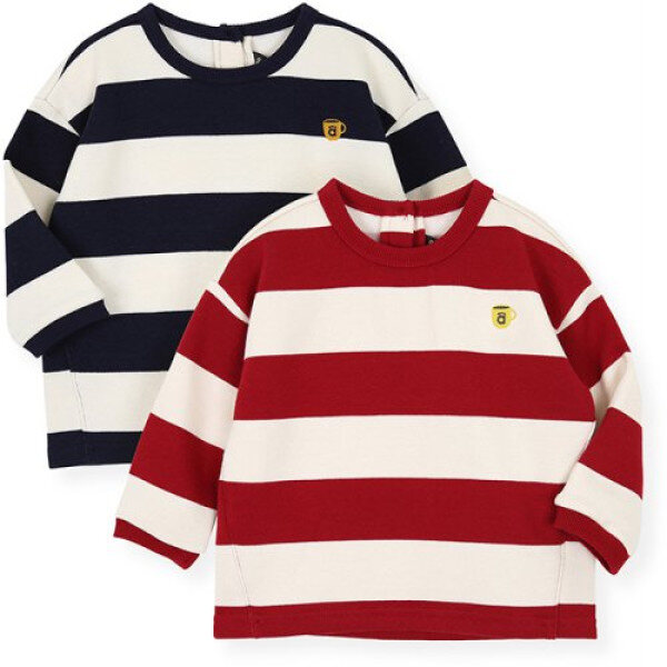 와이드한 스트라이프가 캐쥬얼해 보이는 티셔츠예요.이런 기본 스트라이프 티셔츠는 하나쯤 있으면 아우터와 함께 코디하기 좋아요~네이비와 버건디 컬러로 어디든지 코디하기도 너무 좋답니다.안쪽에는 보들보들 도톰한 기모가 들어있어 한겨울에도 따뜻하게 입을 수 있어요.