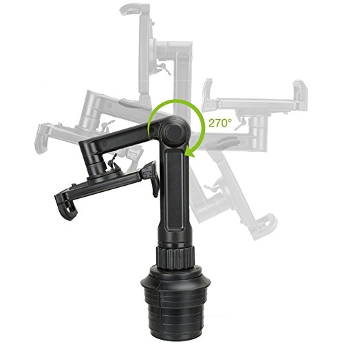 Feature : iKross Cup Mount Holder Car Kit IKHD22 Comes with cellphone holder and tablet holder . / Tablet holder supports any iPad or other tablet 7 to 10.2 inches. / Adjustable and fits firmly in the cup holder for car, truck or SUV. / 360-degrees rotatable holder perfect for comfortable reading or watching videos. / Extra-firm 10 inch arm absorbs vibrations and provides a stable viewing platform.