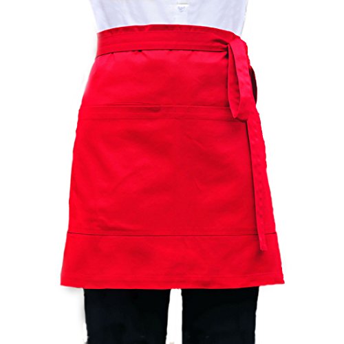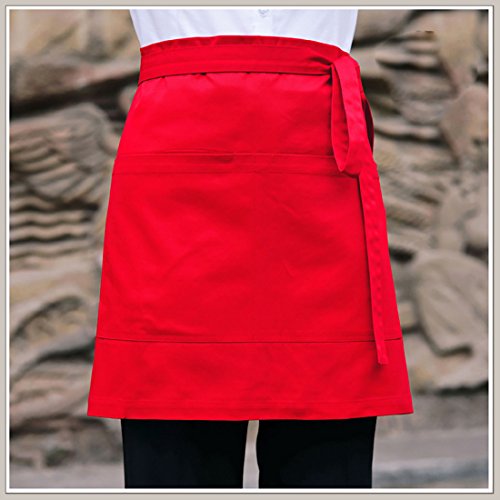 LissomPlume Unisex 2 Pockets Waist Apron Restaurant Bistro Works Half Aprons 70X45cm Red