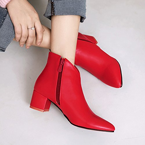 (Mofri)/Women's/Boots/DIRECT FROM USA/Mofri Women's Sexy Pointed Toe Block Medium Heel Side Zipper Short Ankle Boots