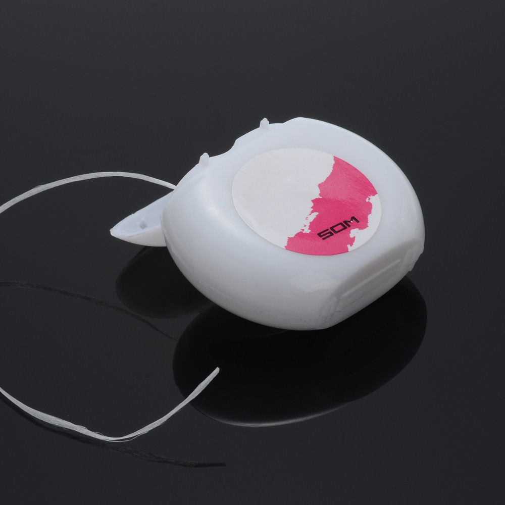 Dental floss, uniform thickness, clean and sanitary, smooth and flexible. No hair, no broken wire, no wax off, no visible impurities.