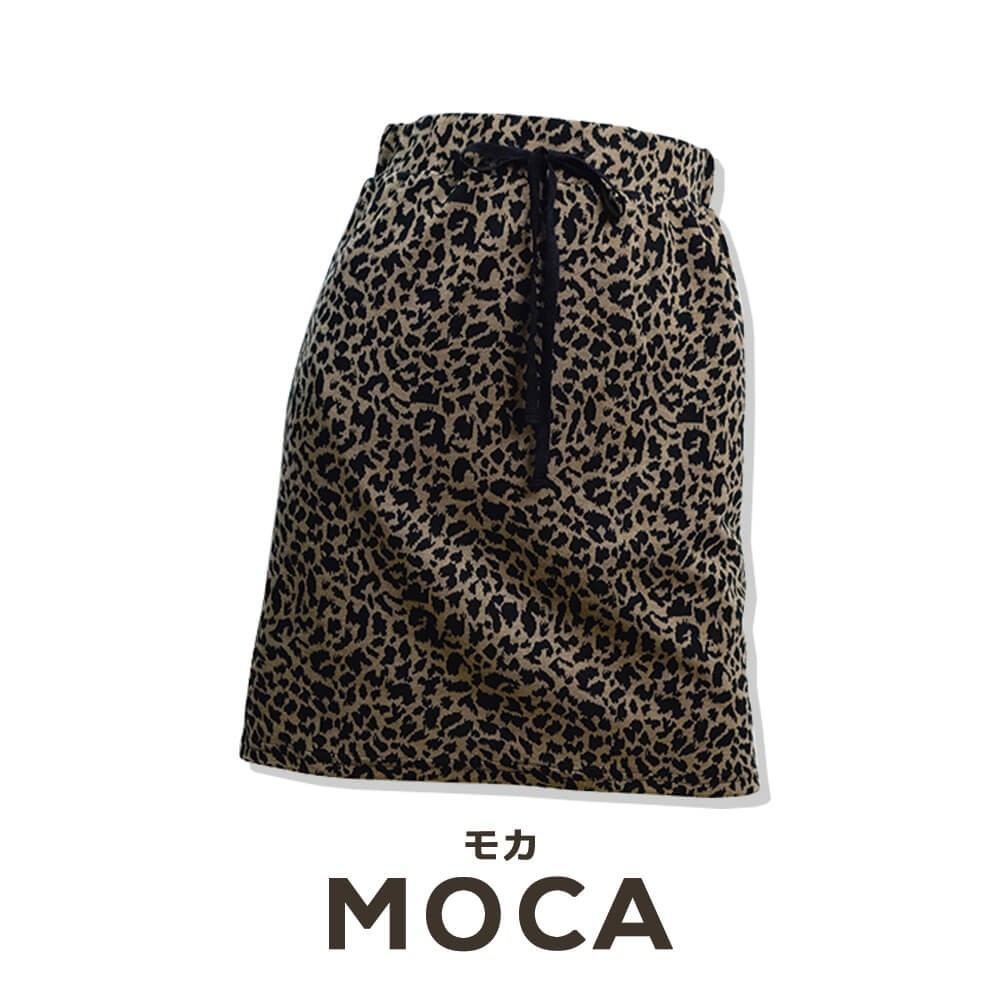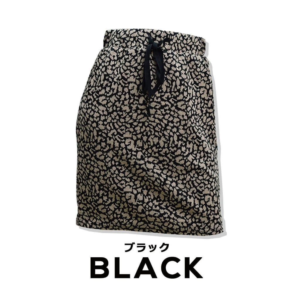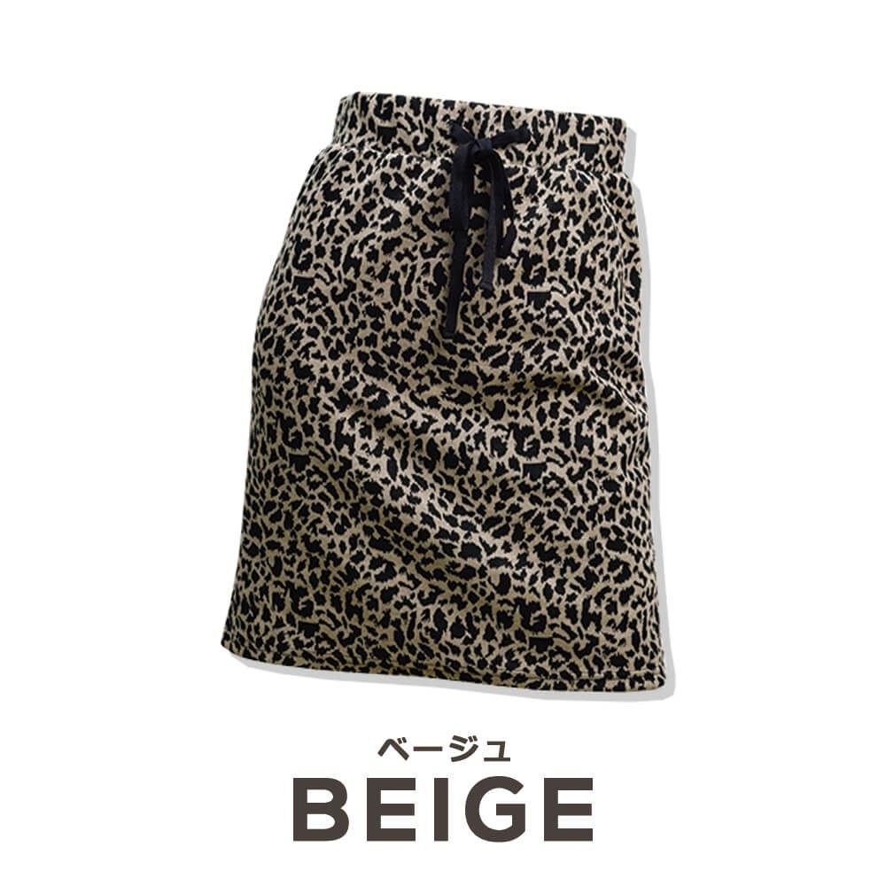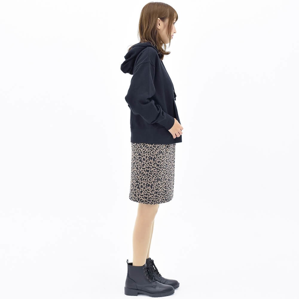 ヒョウ柄でも落ち着きのあるパターン、配色がポイントのタイトスカート。
