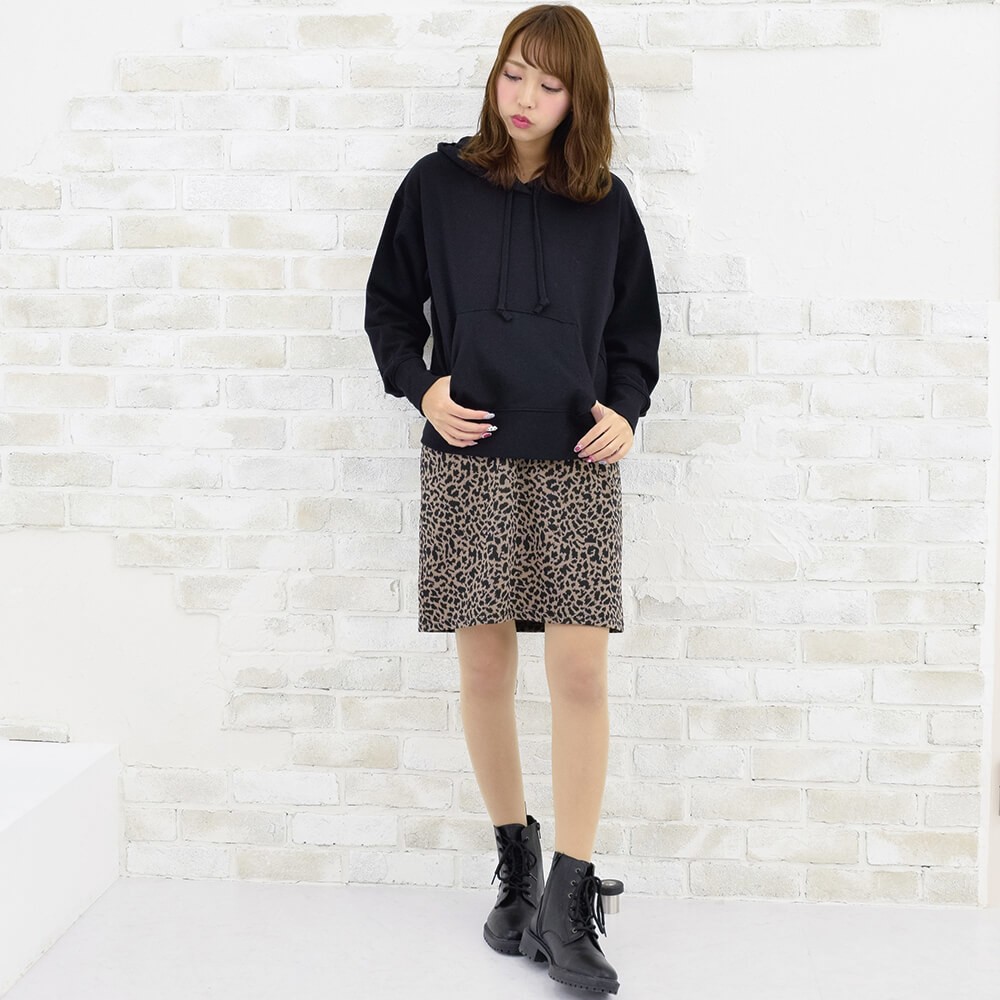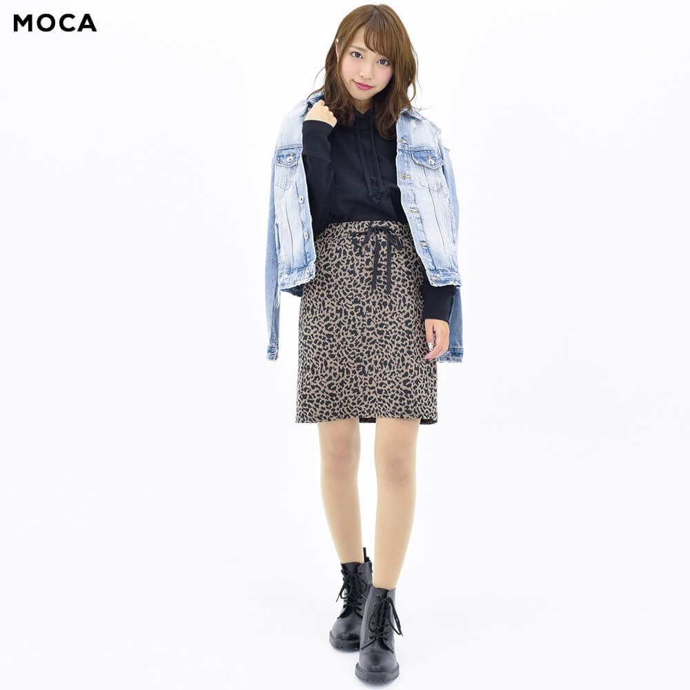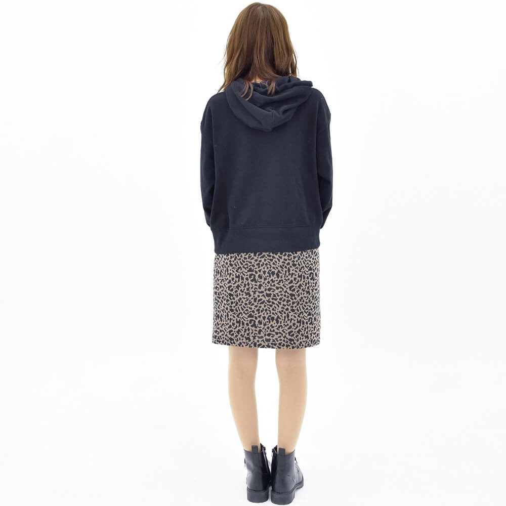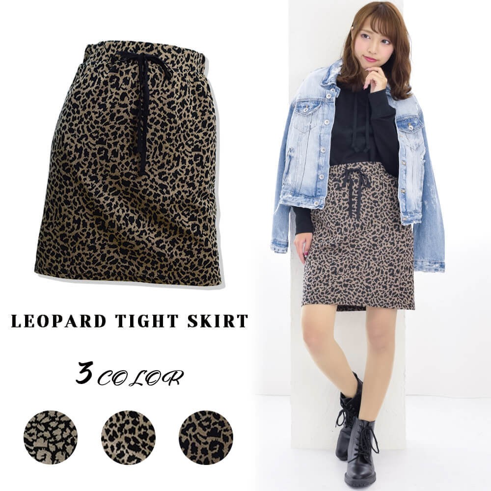 ヒョウ柄でも落ち着きのあるパターン、配色がポイントのタイトスカート。