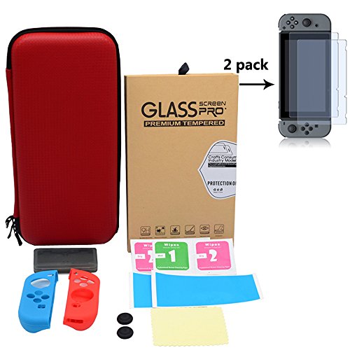 -. Feature : This kit including: 1 pcs Eva Pouchcase Carry Bag For Nintendo Switch Console. 1 set of Silicone Case Anti-slip Protector for Nintendo Switch. 1 pcs 4in1 Plastic Game Card Case For Nintendo Switch. 1 pcs Anti-FingerP.R.Int 0.33mm 9H Premium Tempered Glass Screen Protector for Nintendo Switch / Specifically designed for Nintendo Switch / Full covered hard glass screen protector for Nintendo Switch are made of high quality Japanese AGC glass and Toyo glue / Compact and clear design Game Card Case compatible with game cards for Nintendo Switch.The game card case can holds up to 4 game cards for Nintendo Switch / Protect your device from scuffs,dust,hazards and scratches