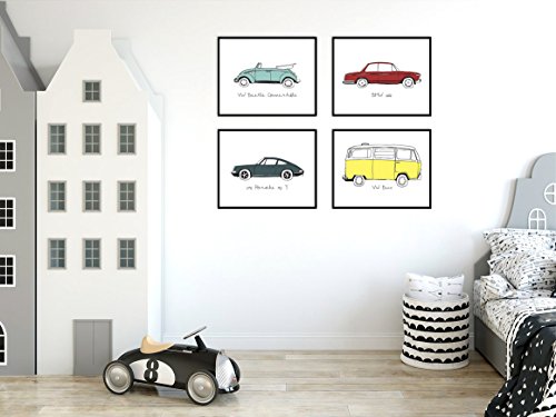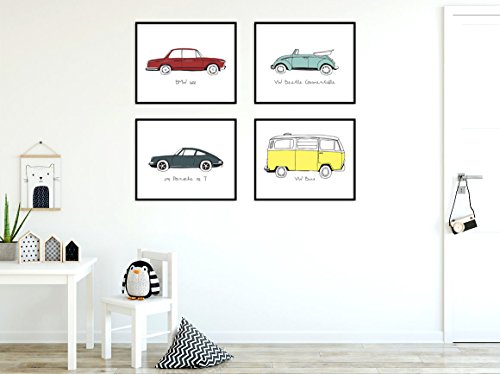 8"x10" Vintage Cars Nursery Prints for Baby and Children Room Decor & Decorations Perfect for Baby Shower Gift Ideas