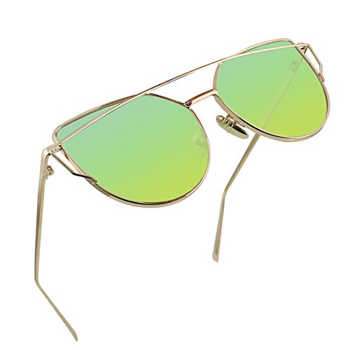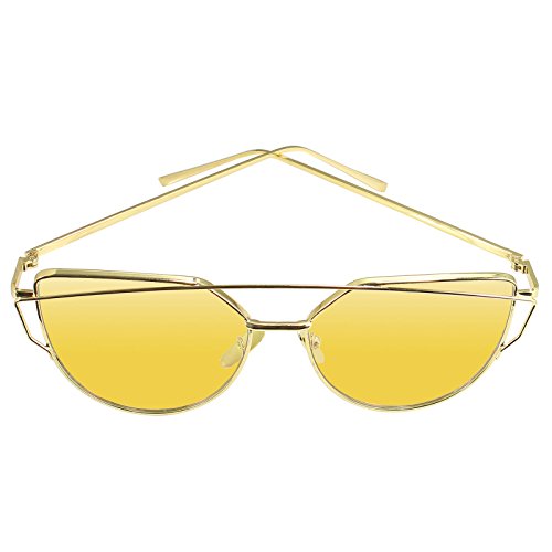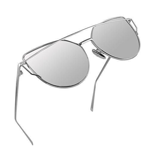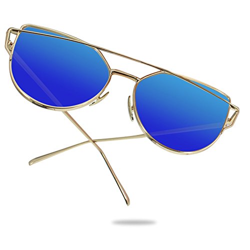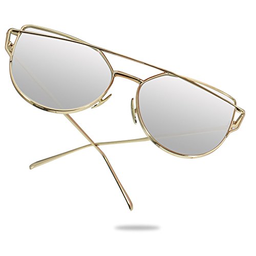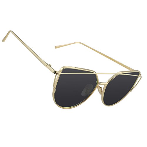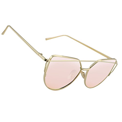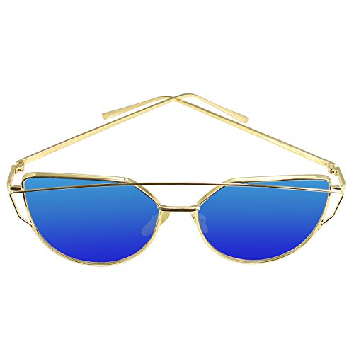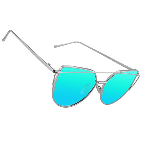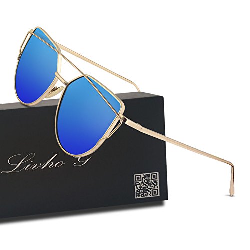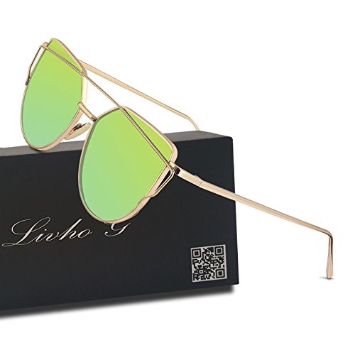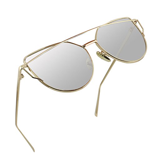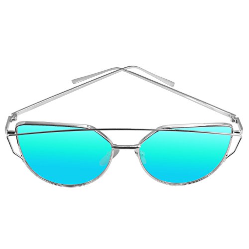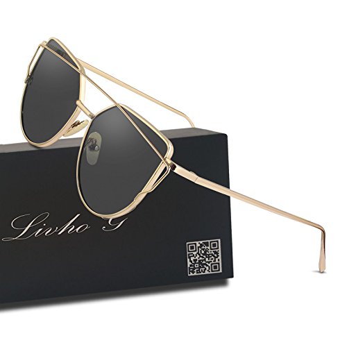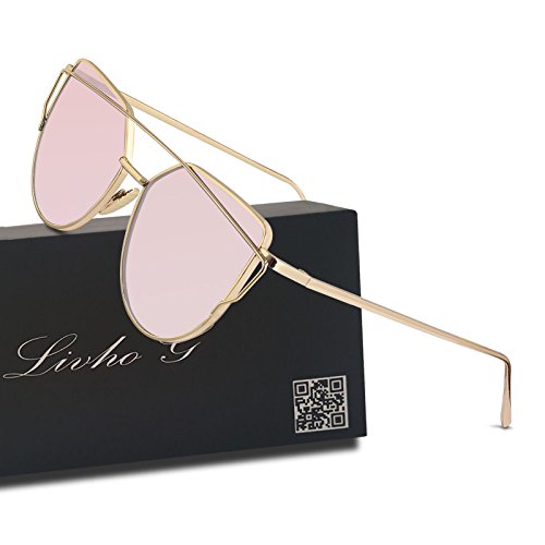 LIVHO G | Cat Eye Mirrored Flat Lenses Street Fashion Metal Frame Women Sunglass Goggles UV400