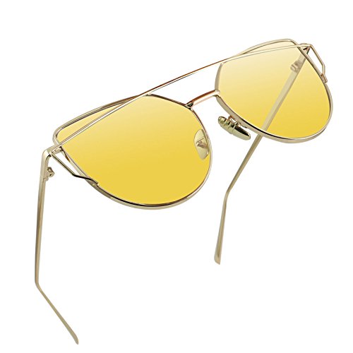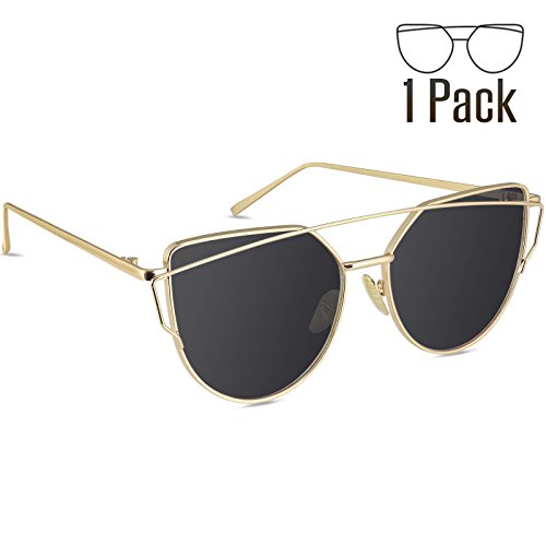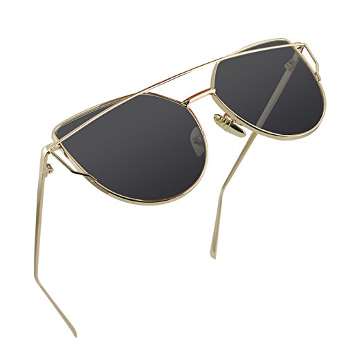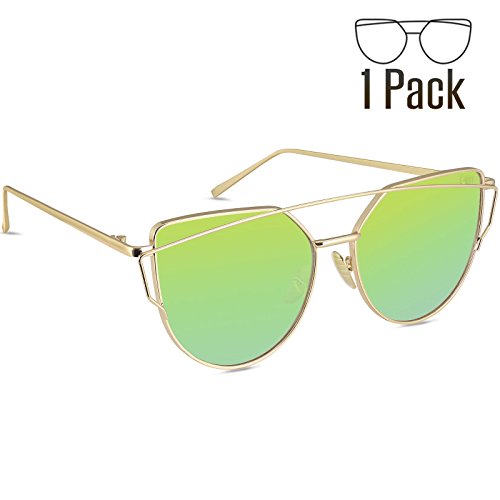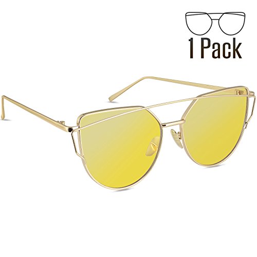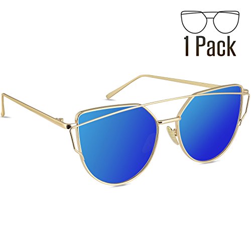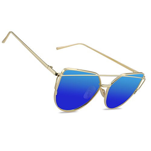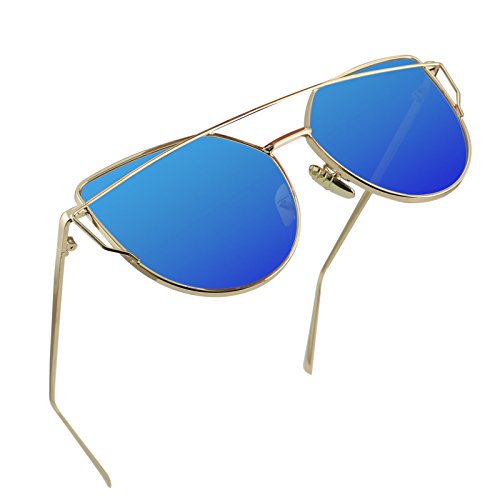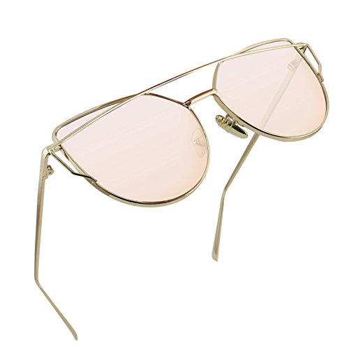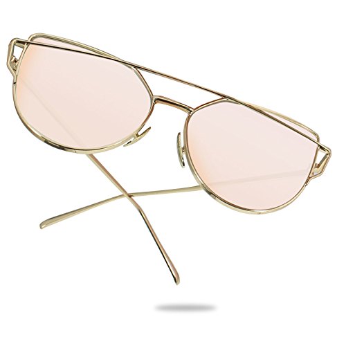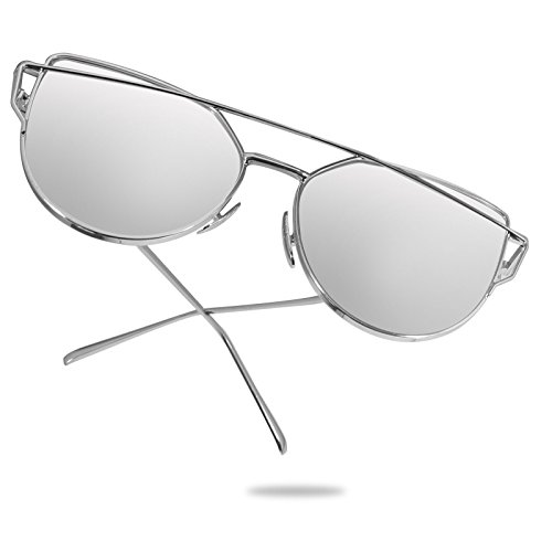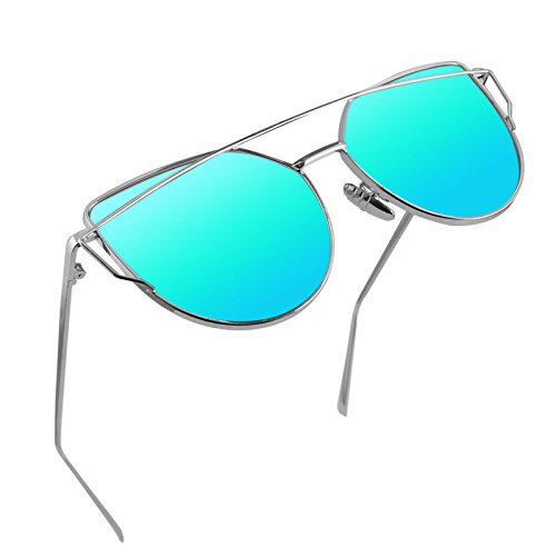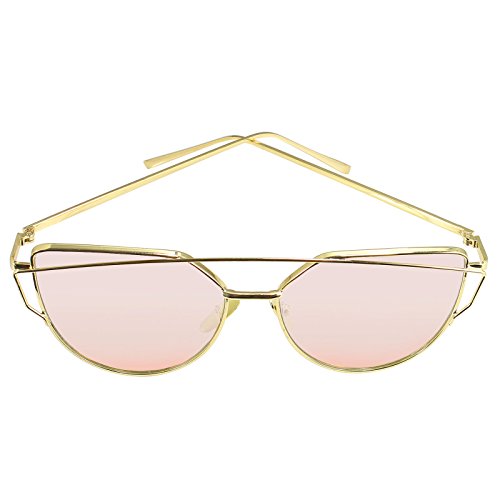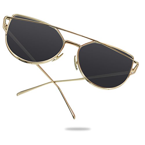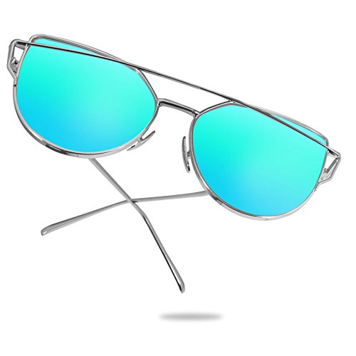 LIVHO G | Cat Eye Mirrored Flat Lenses Street Fashion Metal Frame Women Sunglass Goggles UV400