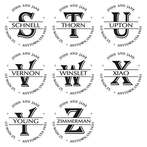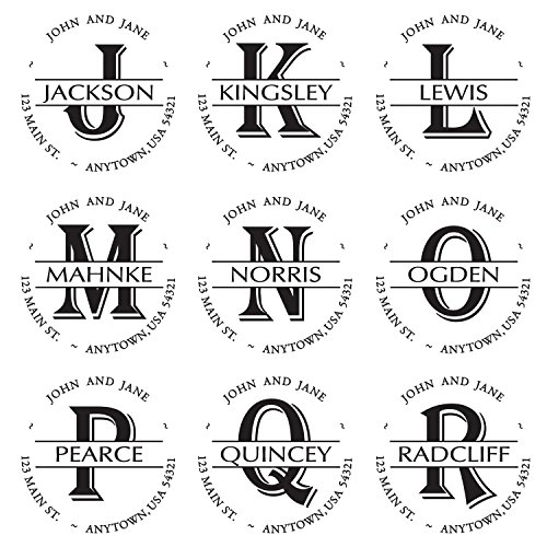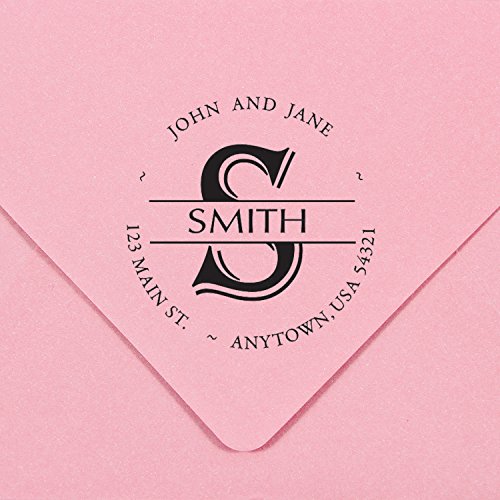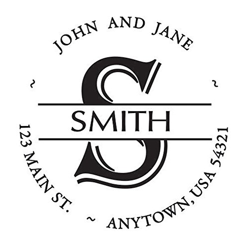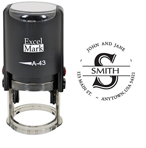 -. Feature : A custom self inking address stamp personalized with your name(s) and address in the font and circular style shown, along with your surname and monogram in the center / Self-inking design allows for rapid, repetitive stamping / Sturdy stamp mount features an open base to easily align impressions / Round impression area: 1-5/8" diameter / Available in your choice of the following ink colors: black, red, blue, green, purple or brown
