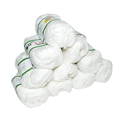 Mangocore 500g 10Pcs Soft Smooth Natural Bamboo Cotton Hand Knitting Yarn Baby Cotton Yarn Knitted By 2.25mm Needles (white)
