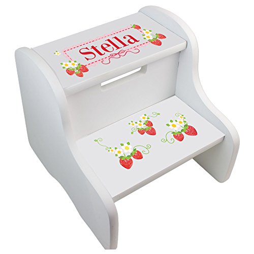 -. Title : Personalized Strawberries White Two Step Stool