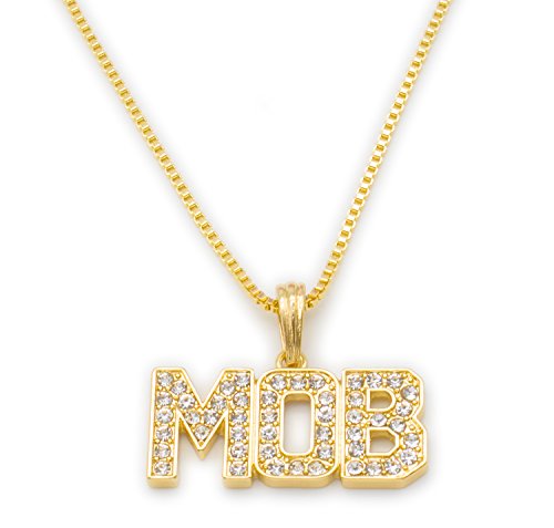 -. Binding : Jewelry -. Brand : Mix&Match -. Department : mens -. Feature : Iced Out Hip Hop MOB Initial Pendant Necklace / Size of Pendant: Approximately 1.75" x 1.35" Inches / Chain Size: 24" Inches - Available in Cuban Chain, Box Chain, and Rope Chain. / Fashion Jewelry for men - Imitation Gold-Plated (Not Real Gold) / Not waterproof - Please avoid water -. Label : Mix&Match -. Manufacturer : Mix&Match -. ProductGroup : Jewelry -. ProductTypeName : FASHIONNECKLACEBRACELETANKLET -. Publisher : Mix&Match -. Studio : Mix&Match -. Title : Mix&Match Iced Out Hip Hop MOB Initial Pendant Necklace - Various Chain
