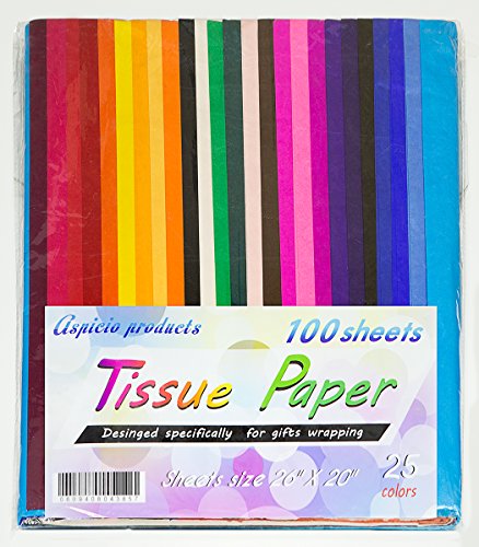 Colored Tissue Paper 100 Vivid Multi Color Sheets Size 26" X 20" Assorted Bulkl 25 Bold Solid Colors