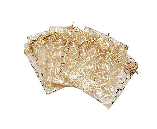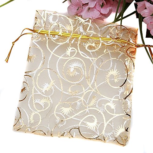 Newest trent Pack of 100 Champagne Eyelash Organza Drawstring Pouches Jewelry Bag Wedding Favor Gift Candy Bags 4.0x 4.7 " Golden