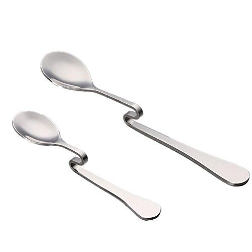 BFY 2 pcs Creative Stainless Steel Flatware Specialty Teaspoon Coffee Espresso Ice Cream Coffee Dessert Spoons (1 Large + 1 Small)