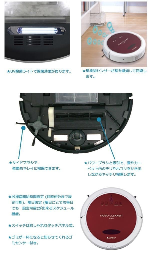 | 5通りの動きでより細やかなお掃除をしてくれ、さらにパワーブラシと吸引で、畳やカーペット内のチリやホコリをかき出しながらキッチリ掃除します。段差検知センサーにより、階段などからの落下を回避。充電量が少なくなると、自動で充電ステーションに戻り充電を始めます。その他、UV除菌ライト、スケジュール機能、壁検知センサーなど機能が充実。 |