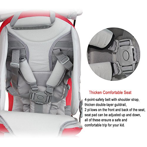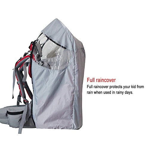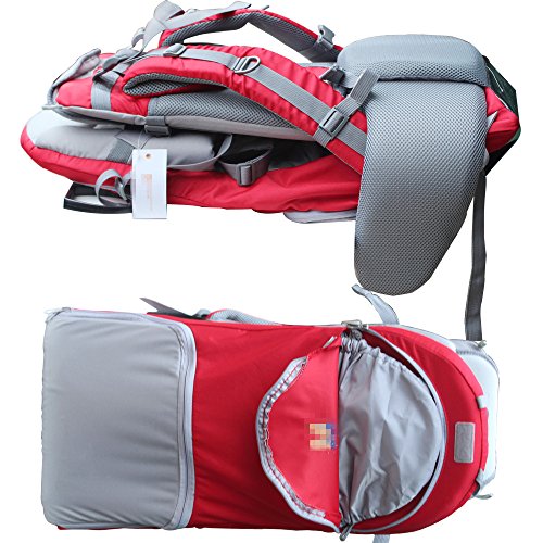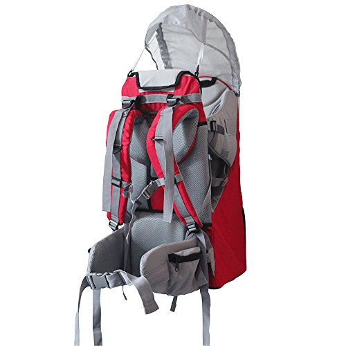 The high quality Backpack Child Carrier is made of strong but lightweight metal frame and 600d oxford cloth, It is approved by American Society of Testing Materials (ASTM) , it can withstand the elements and daily use especially for walking, hiking or even camping. Featuring multiple pockets, thick padded shoulder pads, padded waist strap, and two side water bottle holders. Extra large back pocket for diapers and necessities, which also features a safety reflective strip across the back pocket. Sun/Rain canopy can be easily removed at anytime. The child carrier features an easy adjustment system to provide a comfortable secure fit for you and your child. Metal stands allow it to sit upright on a flat surface and can be quickly folded in when on the go. Folds flat for easy storage and portability. Ideal for children from 6 months up to 4 years - max weight: 50 pounds ( approx. 25kg)