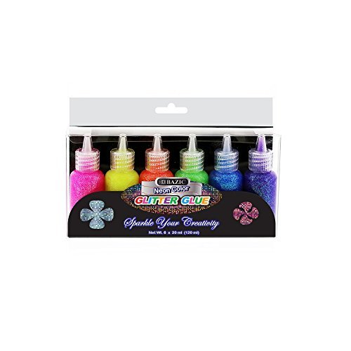 6 Color Glitter Glue Set 20 ml Bottles - NEON Colors - Green, Orange, Pink, Yellow, Blue, and Purple (1 Unit)